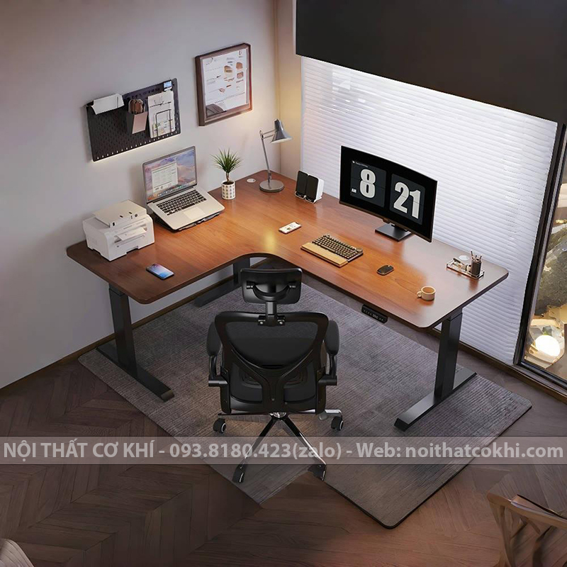 Bàn Làm Việc Nâng Hạ Thông Minh Chữ L 3 Động Cơ