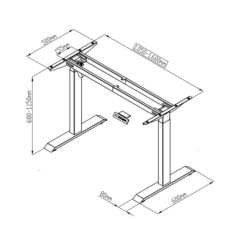 Kích thước chân bàn nâng hạ chiều cao 1 động cơ ERD-1201