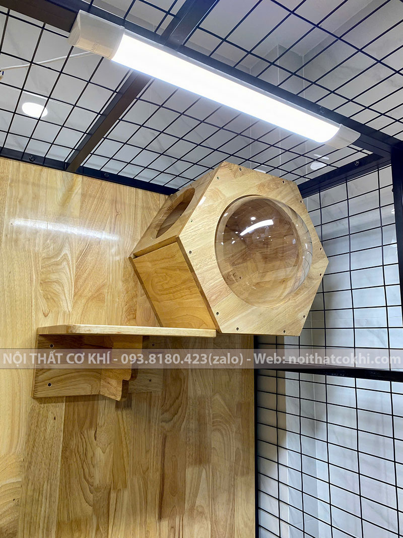 Điểm nhấn nổi bật chính là phần nội thất được làm từ gỗ cao su tự nhiên, đã qua xử lý với khả năng chống nước tuyệt đối, không cong vênh, an toàn và thân thiện khi sử dụng lâu dài. Từng chi tiết được hoàn thiện tỉ mỉ, tạo nên một không gian vừa ấm cúng vừa hiện đại – nơi mèo yêu của bạn có thể thoải mái nghỉ ngơi, vui chơi và phát triển toàn diện mỗi ngày.
