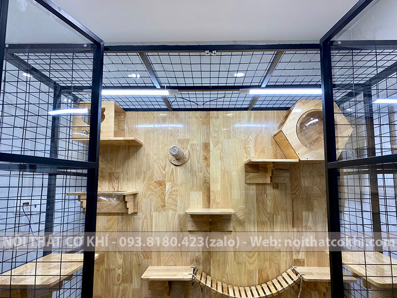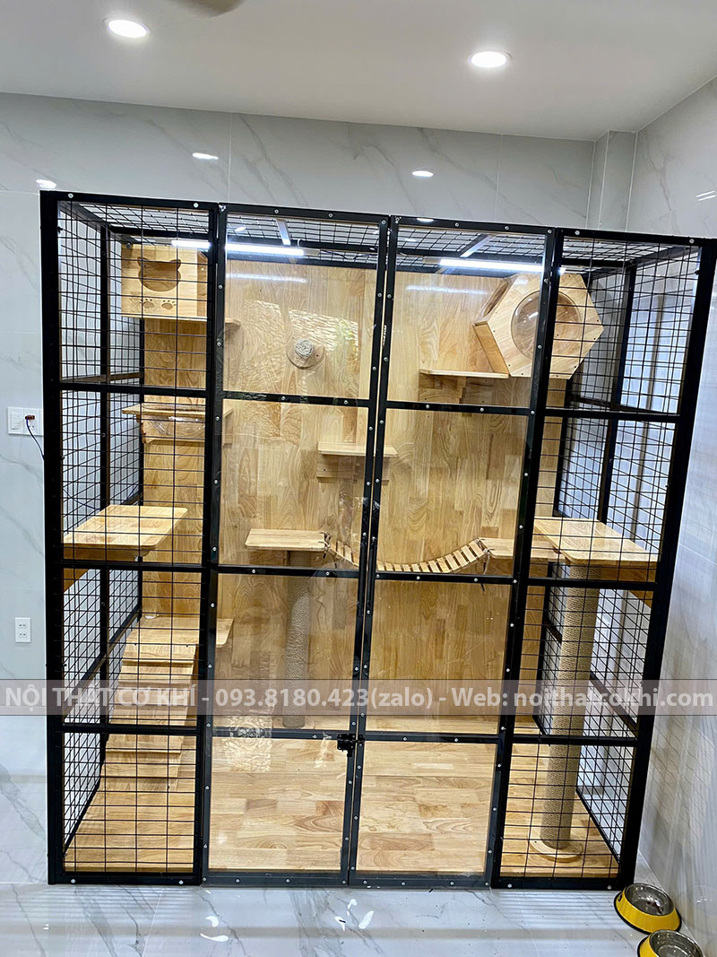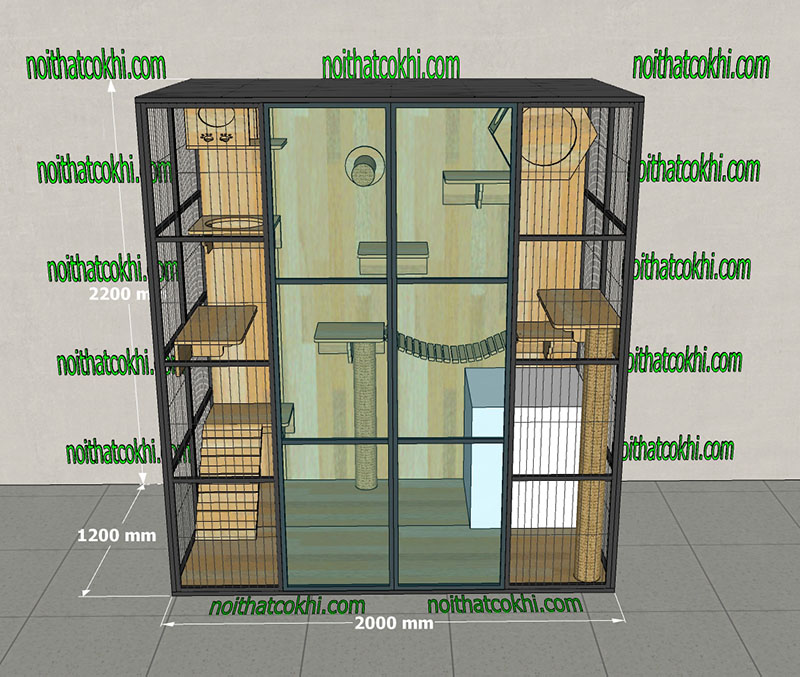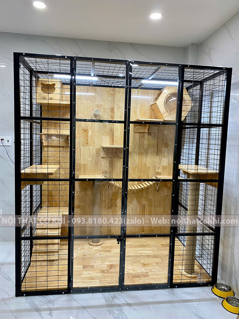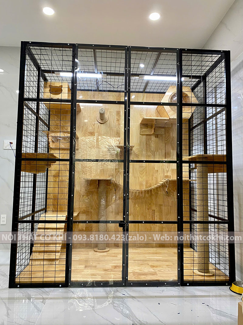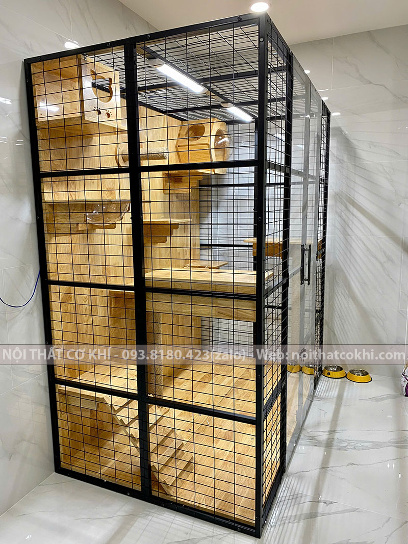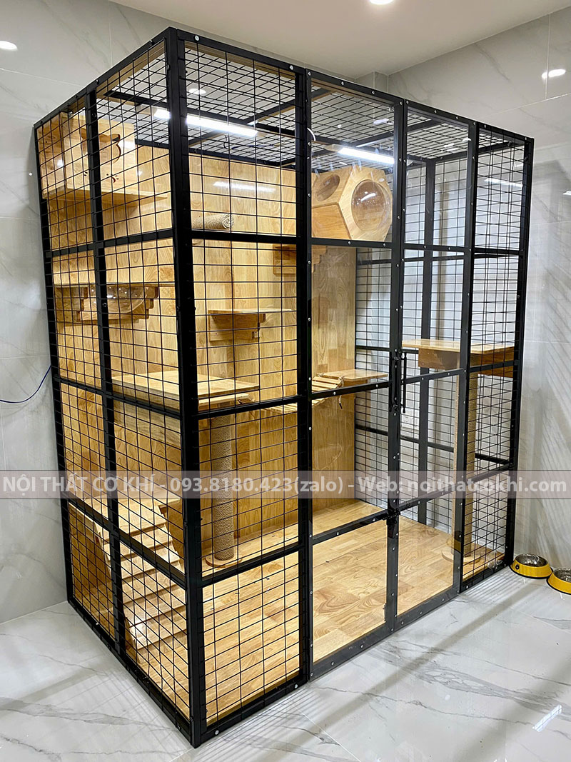 Chuồng mèo khung sắt 200x120x220cm là mẫu chuồng mèo cao cấp, có thể sử dụng trong không gian biệt thự, căn hộ, hay nhà phố. Chuồng mèo làm bằng vật liệu khung sắt + lưới thép, kết hợp nội thất gỗ cao su tự nhiên chống nước, là một lựa chọn tuyệt vời cho những ai muốn đầu tư lâu dài vào không gian sống thoải mái và an toàn cho mèo cưng.