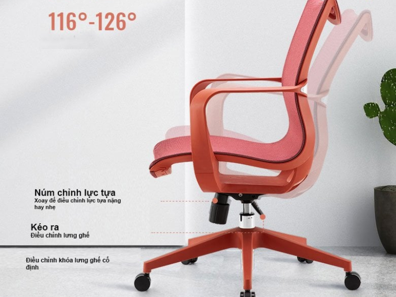 Chất liệu: Lưng ghế lưới, đệm bọc vải, khung nhựa nguyên sinh
