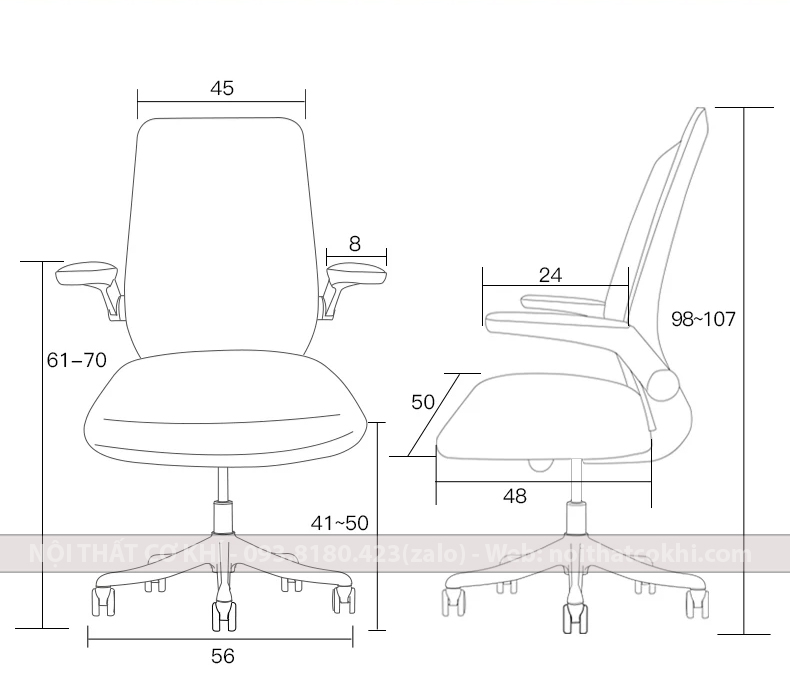 • Chất liệu: Ghế xoay chân nhựa, nệm và lưới.