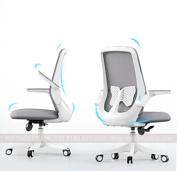 Ghế Văn Phòng Chân Xoay Lưới AON Màu Trắng Xám