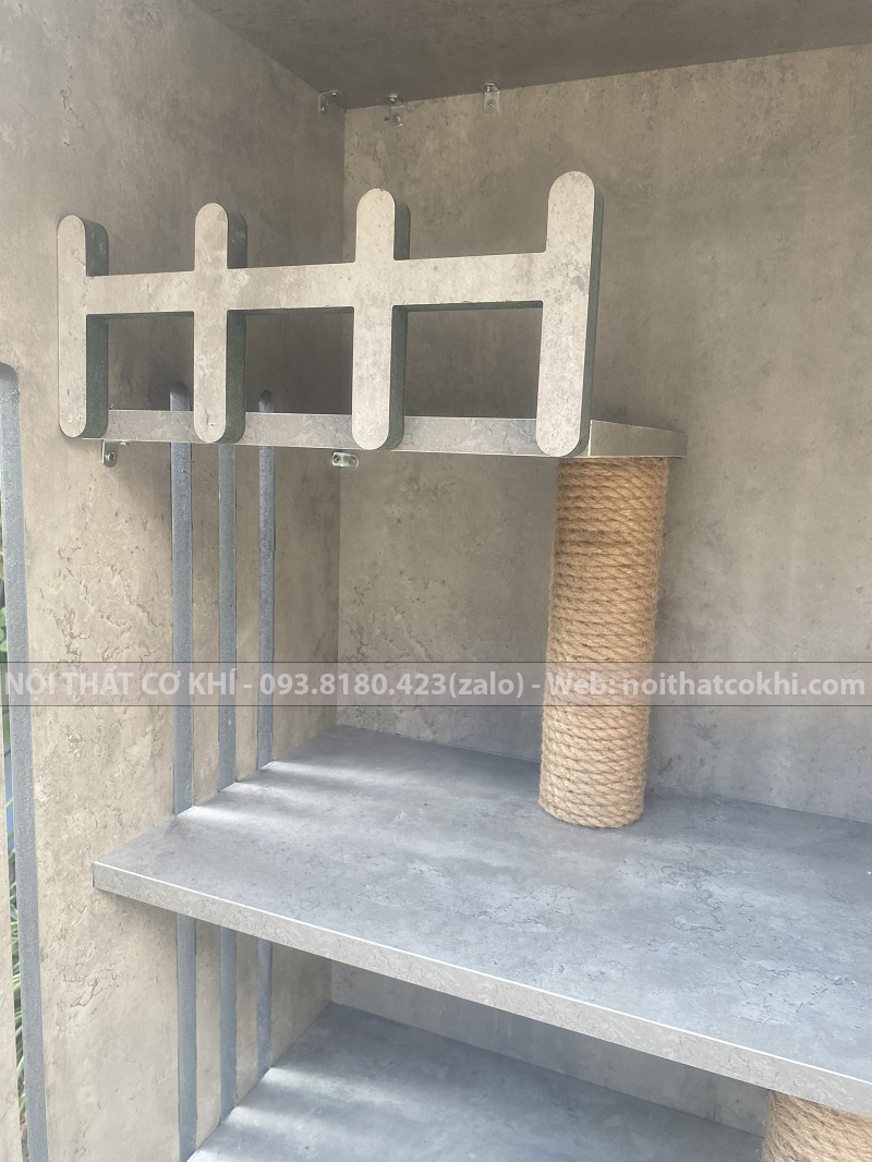 Các tầng bậc thang và trụ cào móng cho mèo leo trèo vui chơi.