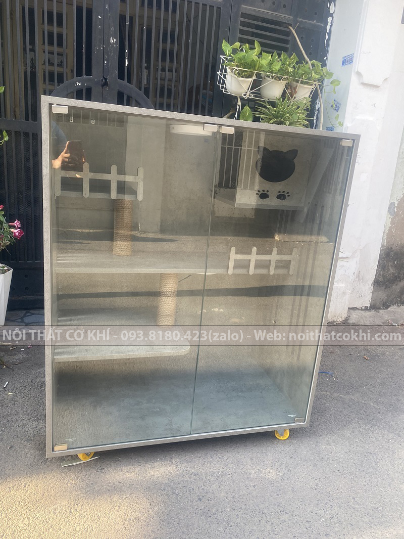 Nhà gỗ cho mèo rất được ưa chuộng, bởi đặc tính bền bỉ, cũng như sự chắc chắn và an toàn. Thiết kế như một dạng khối riêng, tách biệt thú cưng của bạn với môi trường bên ngoài, nhà cho mèo bằng gỗ được bao phủ xung quanh là thành gỗ và hệ cửa kính cường lực dày 8mm rất an toàn, thành gỗ hai bên được chạy rảnh để tạo lỗ thông hơi, thoáng khí cho thú cưng không bị ngột ngạt khó chịu.